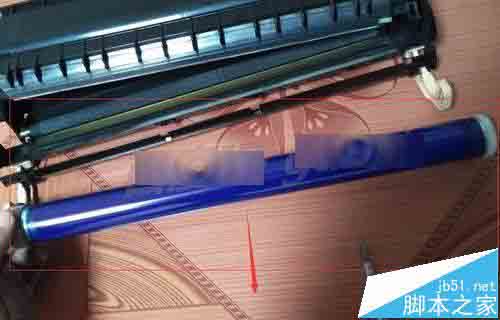 4、這樣感光鼓就可以取下了,用脫脂棉花將表面擦干凈,一定要溫柔,輕輕得擦拭,