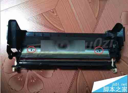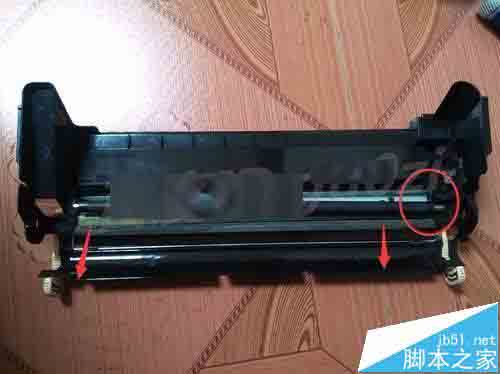 1、先將大報紙鋪在地板上,非常重要,筆者今天忘記放了,弄了一地的廢碳粉,清理了大半天.為了避免操作過程,傷到感光鼓,先用尖嘴鑷子把感光鼓左右兩邊的彈簧取下