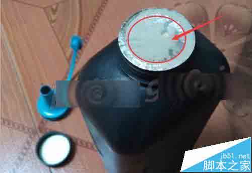 1、將購買的碳粉的蓋子取下,順著瓶口邊沿將密封的鋁箔紙撕開,