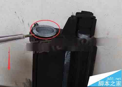 1、取下充電輥后,就可以對廢碳粉進行處理了,用螺絲刀將廢碳粉倉蓋上的兩個螺絲旋下來.