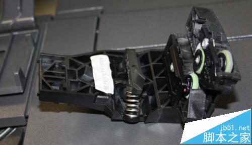 1、關機,打開機器上蓋,順著不銹鋼的導軌向最左側找,將裁紙刀拖出來