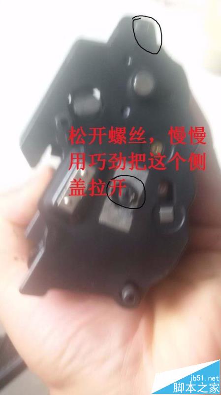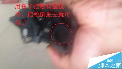 3、最后,就是加粉,如圖松開螺絲,慢慢用巧勁把這個側(cè)蓋拉開,打開后,把粉倉蓋子用鉗子拉開,粉到進(jìn)去,再蓋住,再按照 步驟把硒鼓裝好,就可以了,整個加粉過程就這樣輕松完成。