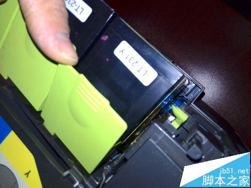 2、根據(jù)打印機提示更換要更換的墨盒,把相應(yīng)的墨盒取出來,然后把新的放進去,關(guān)閉艙門,重新開機,一搬情況下就好了,但是,有些情況是這樣的,更換上新的以后,還是提示墨盒沒墨,請更換,這個時候,如果繼續(xù)更換墨盒,代價太大,一個墨盒好幾百,于是我就把另一個顏色的墨盒也取出來,把里面的芯片和新的更換個位置,如圖,芯片在下方。