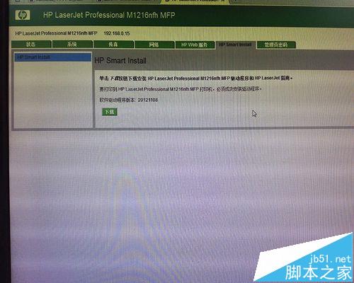 3、接下來下載打印機驅動程序,還是去15的機器上下載,輸入15的網址,選擇hp smart install,點擊下載。