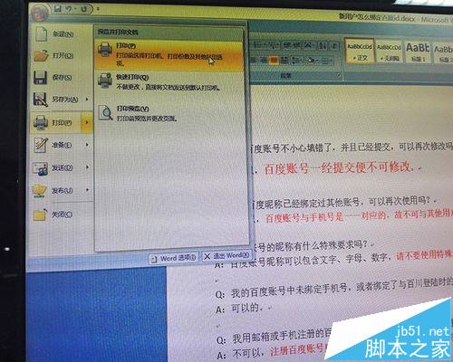 1、打開需要打印的文件,這里拿word文檔舉例。點擊左上角的圓按鈕,在列表中選擇打印,點擊打印,就會彈出打印機選擇界面。
