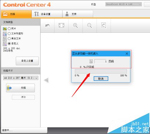 1、首先要調(diào)出無(wú)線網(wǎng)絡(luò)打印機(jī)中的掃描窗口,點(diǎn)擊圖中的這個(gè)圖標(biāo)就可以啦。之后來(lái)進(jìn)行掃描相關(guān)的操作。
