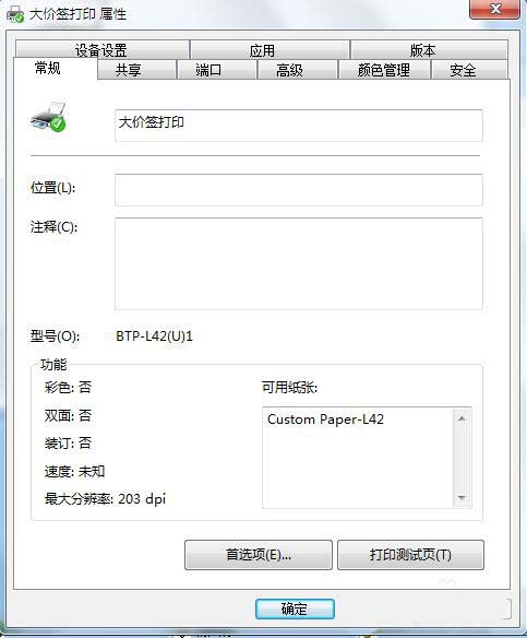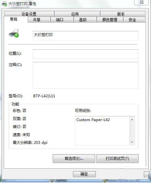 6、設定好以后我們就可以看到在常規欄中的可用紙張已經變成我們自己設定好的紙張紙型了。到此打印機屬性就設定完畢了。