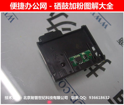 第七步:把粉盒上的計數芯片取下來,換上新的計數芯片,如圖示: