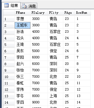 with a as (SELECT FName, FSalary, FCity, FAge, ROW_NUMBER() over(ORDER BY FSalary) as RowNum FROM T_Person )SELECT * FROM a