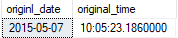 declare @Time time='00:00:00.000'declare @Date date='0001-01-01'select dateadd(day, 735724, @Date) as originl_date , dateadd(ms,36323187, @Time) as original_time