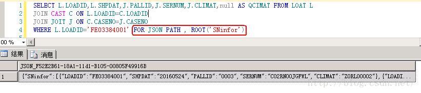 2、FOR JSON AUTO,Root('') :為JOSN加上根節(jié)點