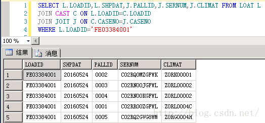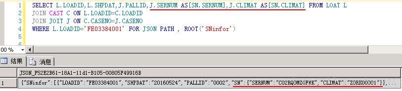 比如下面的SQL,增加了一個“SN”節(jié)點,把欄位SERNUM和CLIMAT放在里面: