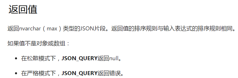 3、JSON_QUERY :從 JSON 字符串中提取對象或數(shù)組。
