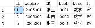 DELETE DEMO_DELTE WHERE ID NOT IN( SELECT min(ID) FROM DEMO_DELTE_2 GROUP BY xuehao,XM,kcbh,kcmc,fs)