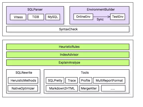 SOAR主要由語法解析器,集成環境,優化建議,重寫邏輯,工具集五大模塊組成。