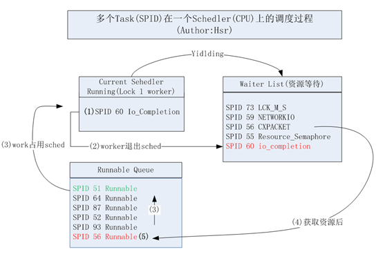 Yelding就是所有邏輯scheduler上運行的Worker都是非搶占式的, 在 Scheduler上Worker由于資源等待,讓出給其它Worker就叫Yielding。