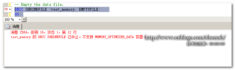 ---創建內存表文件組ALTER DATABASE [test] ADD FILEGROUP [test_ag] CONTAINS MEMORY_OPTIMIZED_DATA GO ----創建內存表數據庫文件ALTER DATABASE [test] ADD FILE ( NAME = 'test_memory', FILENAME ='D:/database/memory' ) TO FILEGROUP [test_ag]; GO