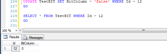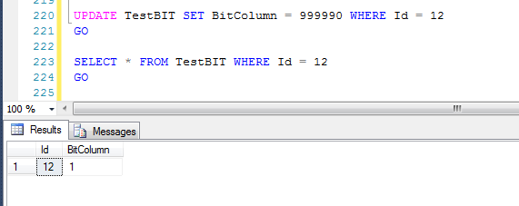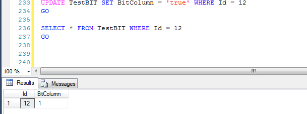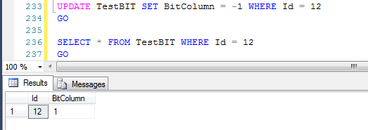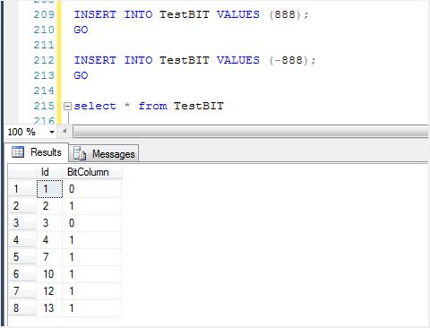 CREATE TABLE TestBIT( Id INT IDENTITY(1,1), BitColumn BIT)