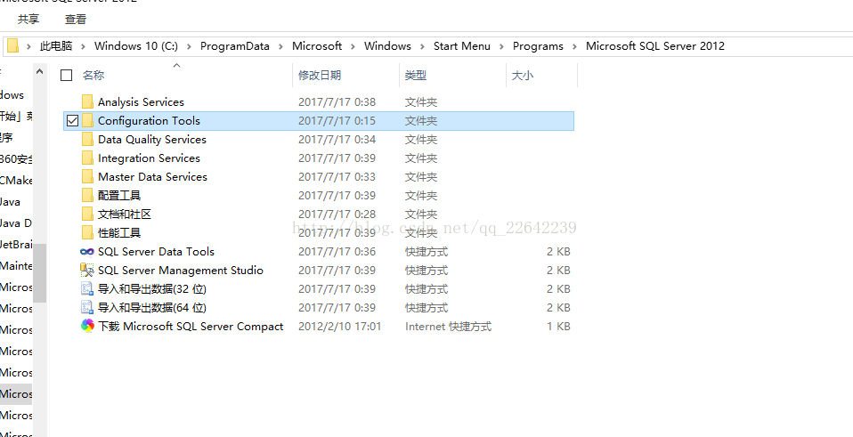 或者 你可以直接打開 C:/ProgramData/Microsoft/Windows/Start Menu/Programs/Microsoft SQL Server 2012 這個文件夾,根據你自己電腦的結構操作。