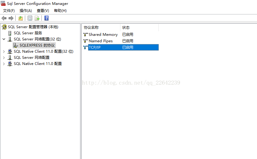 點開 SQLEXPRESS 的 協議 下的 TCP/IP,點擊啟用,這里我的已經啟用了,如圖下所示: