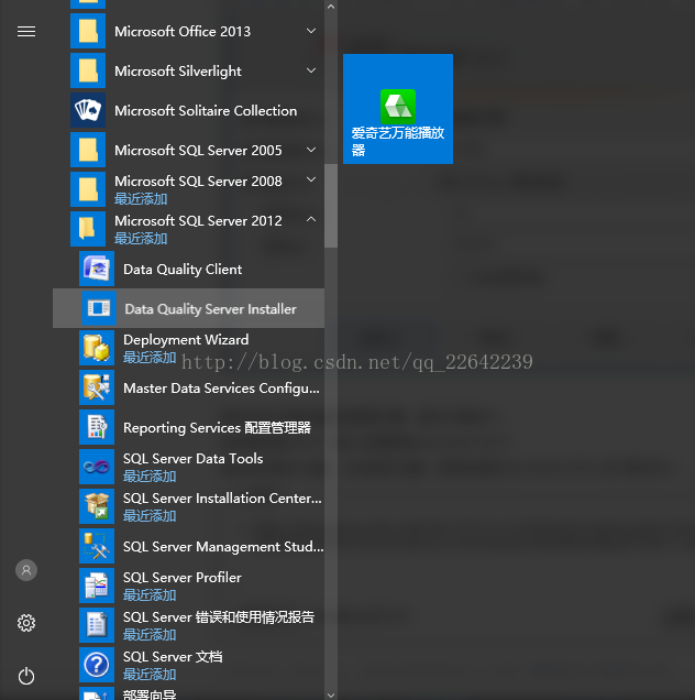 鼠標移動到win 鍵上 點擊鼠標左鍵,找到安裝的sql server 2012 如下圖 所示: