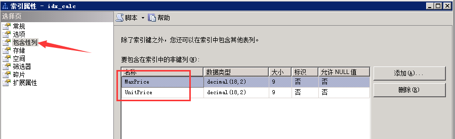 分析查詢sql可以得知,我們需要計算的值只有UnitPrice和MaxPrice,所以想到把UnitPrice和MaxPrice添加到idx_calc的包含列中。如圖