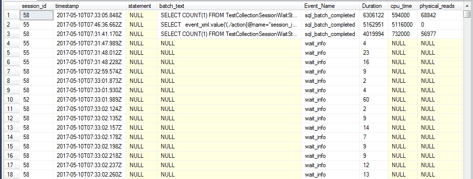 是用擴展事件收集的Session級別的等待信息有以下幾個特點