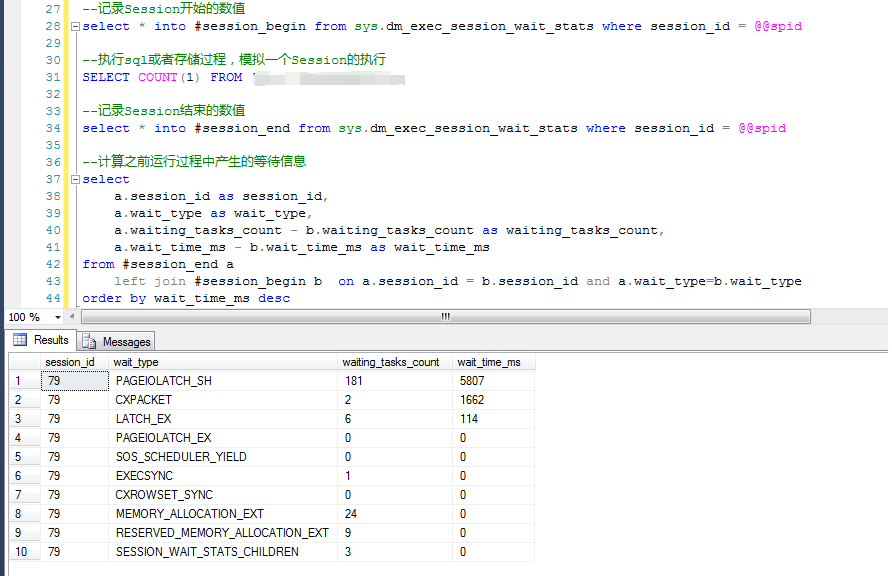 不難發現,如果計算計算其產生的次數(count),就類似于sys.dm_os_wait_stats 中的waiting_tasks_count,計算其產生的總時間(sum),就類似于wait_time_ms