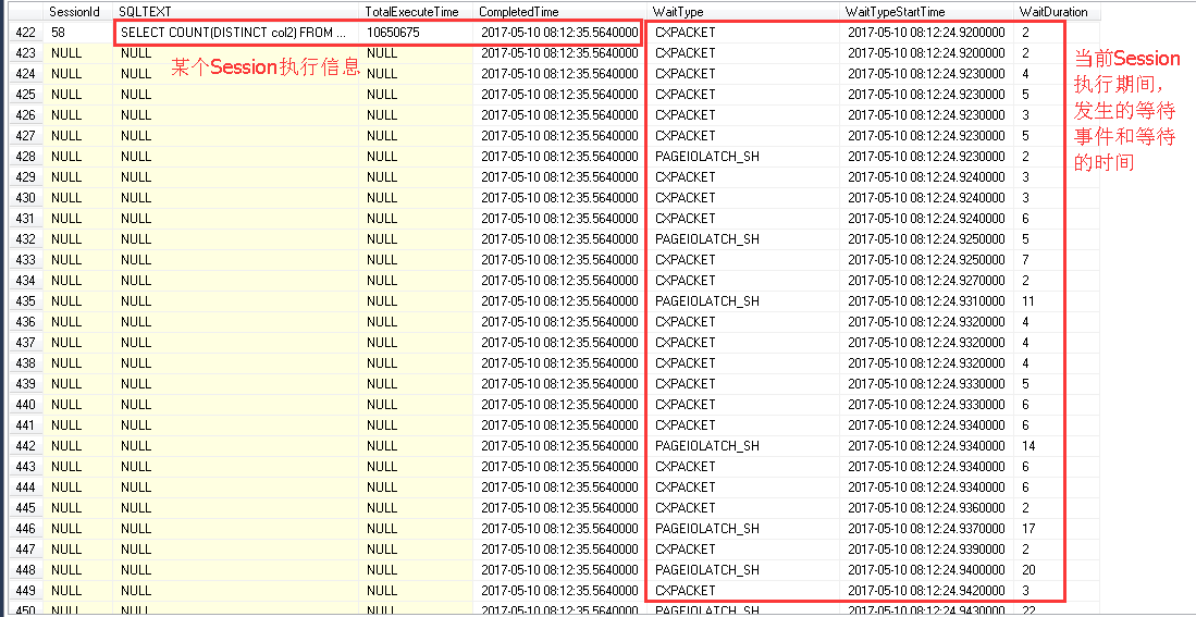 因為擴展事件收集到的事件信息中SQL語句完成事件(rpc_completed或者sql_batch_completed)與產生的等待之間,沒有一個直接的對應關系。
