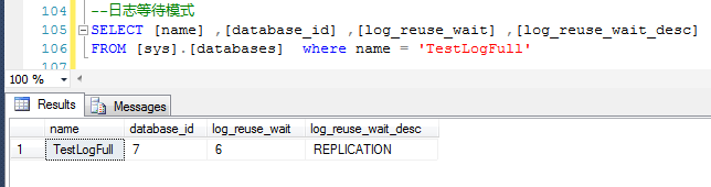 2,此時的日志被狀態被標記為Replication,也即處于待復制狀態,這個活動狀態跟數據庫的還原模式無關,即便是簡單還原模式,