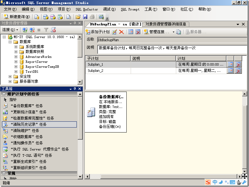 下面我來講一下如何通過維護計劃來實現完整備份+差異備份:
