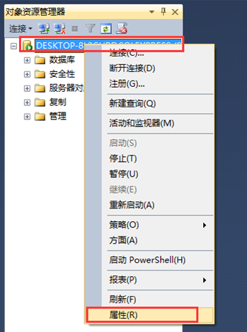 4、對著服務(wù)器,點(diǎn)擊鼠標(biāo)右鍵,選擇里面的屬性