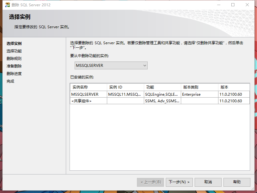 當這一步也完成了,那么SQL server 2012已經卸載完成了一大半,現在只需要將C盤里面的一些文件刪除和刪除注冊表就行