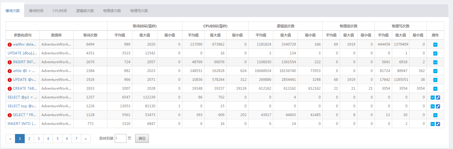 注:這里我們可以根據等待次數、等待時間、消耗的各種資源排序,來多維度分析阻塞的語句類型