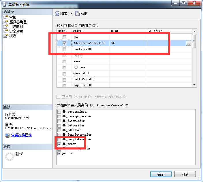 2.權限分成兩部分,實例級別“登錄名”和數據庫級別“用戶”
