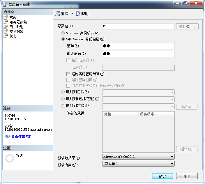 1.在主節點上直接添加的是“登錄名”,比如創建一個登錄名 KK
