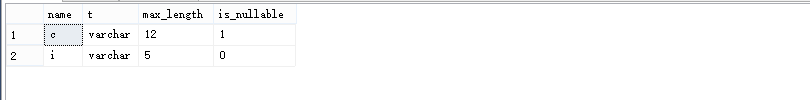 DECLARE @c5 VARCHAR(5);SELECT c = COALESCE(@c5, 'Jeffcky Wang'), i = ISNULL(@c5, 'Jeffcky Wang')INTO dbo.TestISNULL_COALESCESELECT name, t = TYPE_NAME(system_type_id), max_length, is_nullable FROM sys.columns WHERE [object_id] = OBJECT_ID('dbo.TestISNULL_COALESCE');