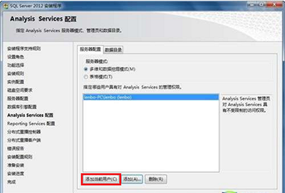 3. 添加SQL Server管理員名稱,這里會有好幾個界面都要添加,有三個,不一一列舉。選擇“添加當前用戶”