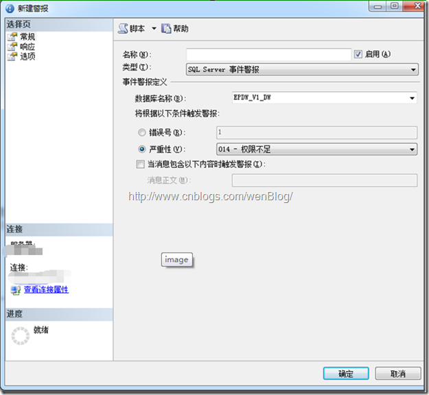 可以選擇警報類型,針對數據庫和嚴重性中選擇監測內容比如權限不足,當發生權限不足時報警: