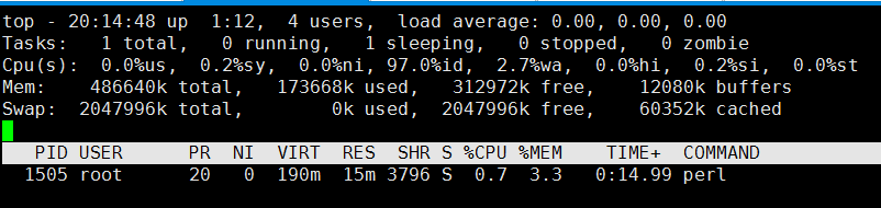 運(yùn)行了0:15.00(TIME+列),MEM一直穩(wěn)定在3.3%