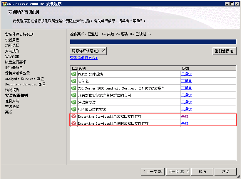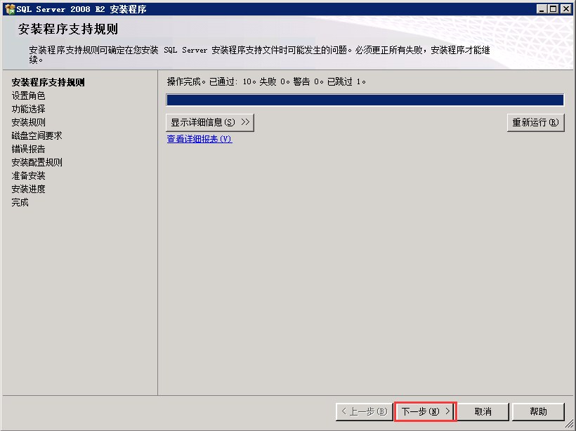 4.1.0安裝支持規則的檢測(檢測當前系統環境能否支持SQL2008 R2)