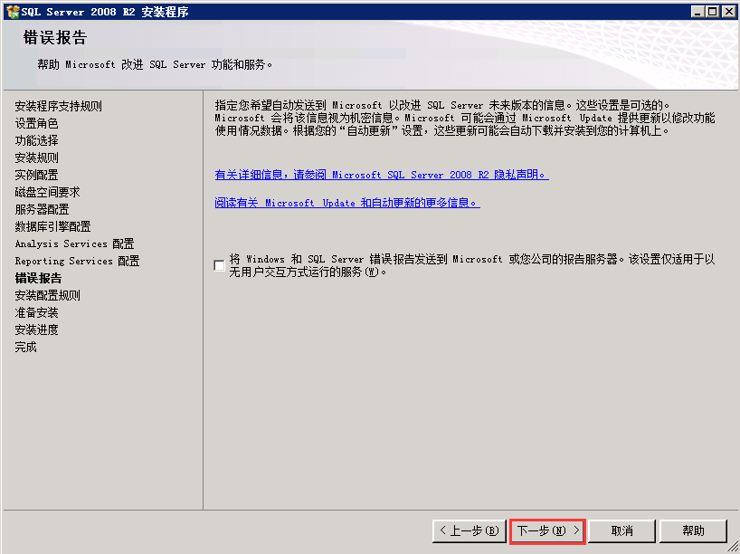 4.2.2.錯誤報告,默認即可.其指定出錯時要不要發送錯誤報告給微軟.