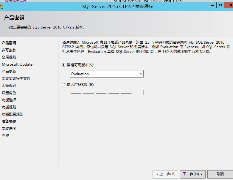 因為是評估版,那么就不需要產品密鑰,直接安裝