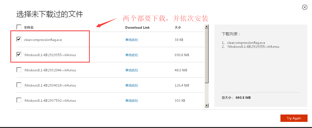 需要同時下載clearcompressionflag.exe和Windows8.1-KB 2919355-X64.msu