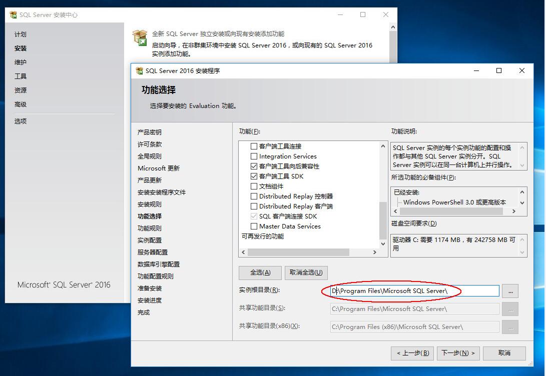3.選擇你要安裝的功能 [可以利用PolyBase,使用標準TSQL查詢hadoop數據,但這里我不需要裝]
