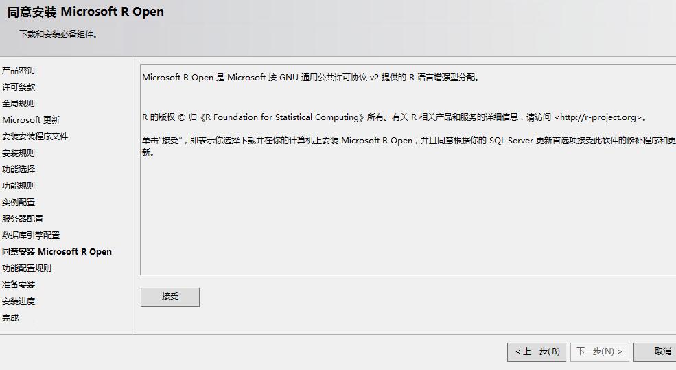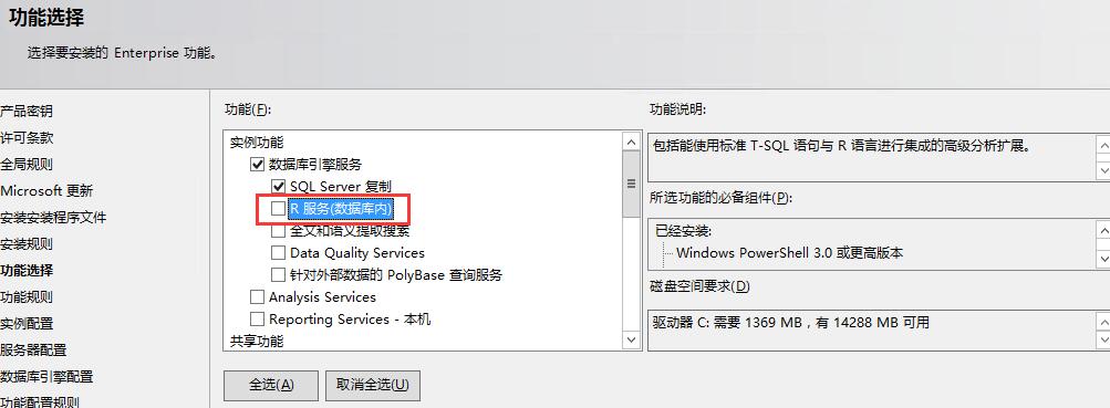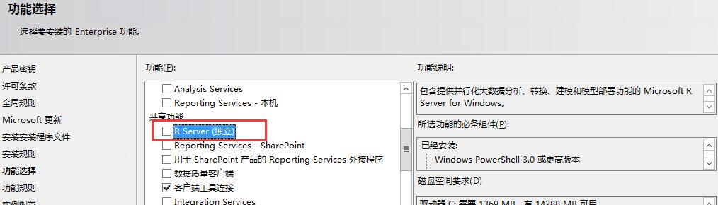 功能選擇里多出來的R Server,但是R Server需要聯網或者自己下載下來,這是坑爹的地方之一,它沒有集成在SQL Server2016安裝包里