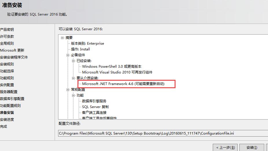開始安裝,SQL Server2016需要最新的.NET4.6