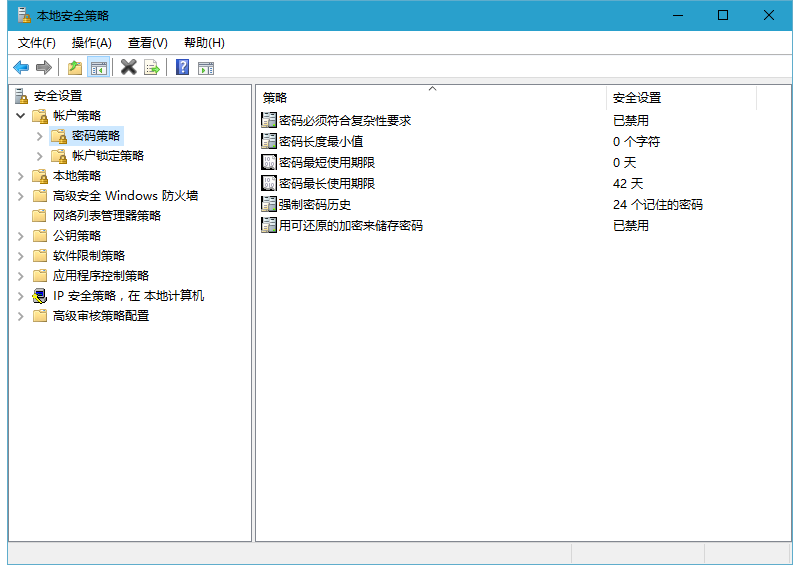 插圖2.8:Windows本地安全策略小程序,顯示默認的密碼策略。