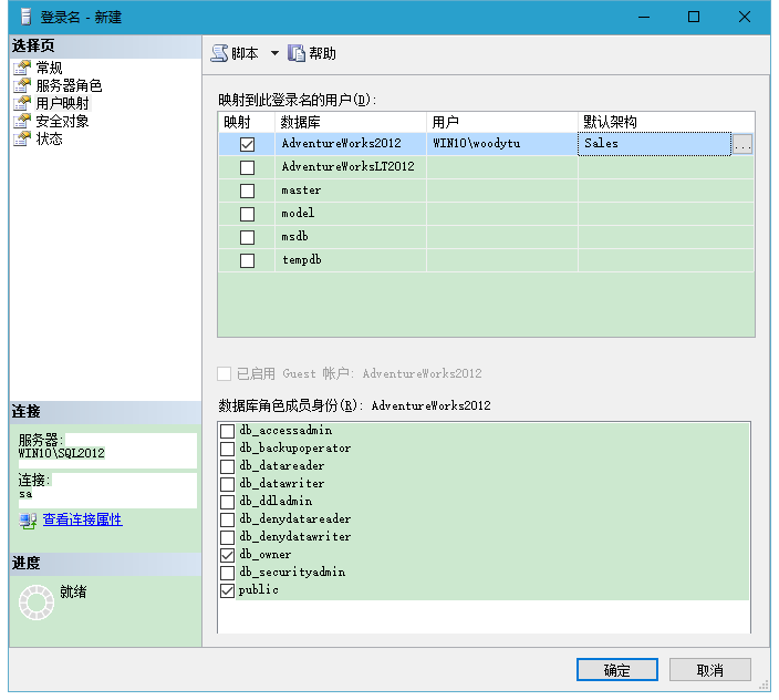 插圖2.5:授予Windows登錄訪問AdventureWorks2012數據庫