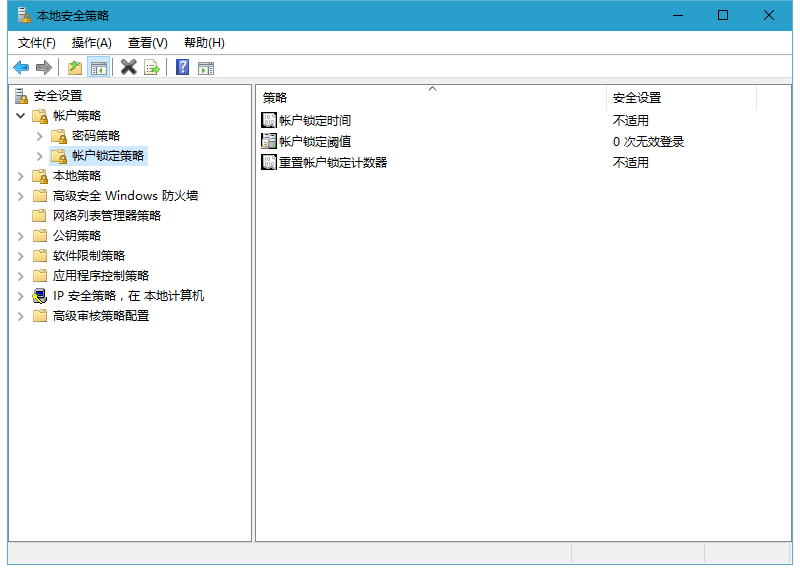 插圖2.9:Windows本地安全策略小程序,顯示默認的賬號鎖定策略。